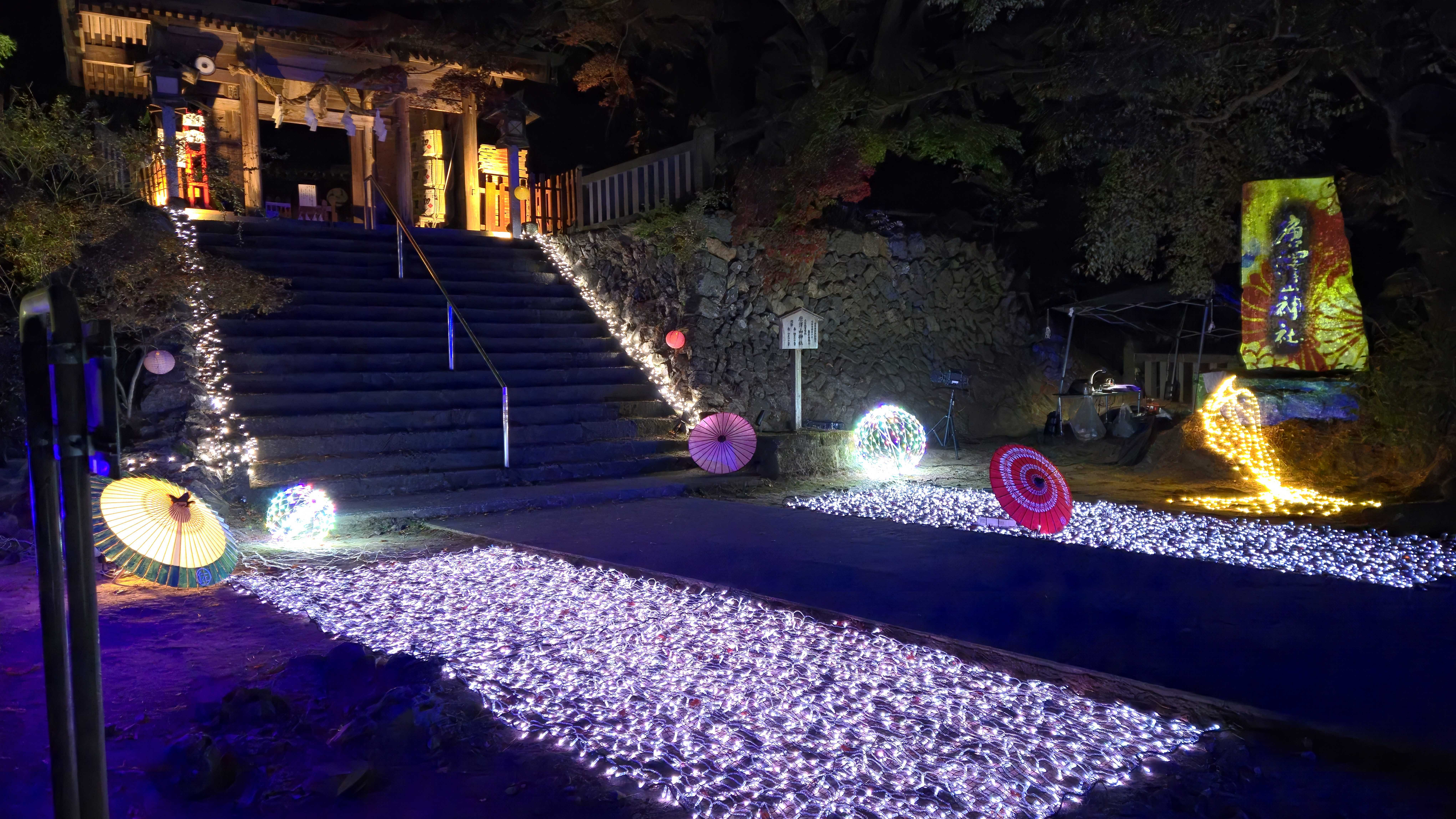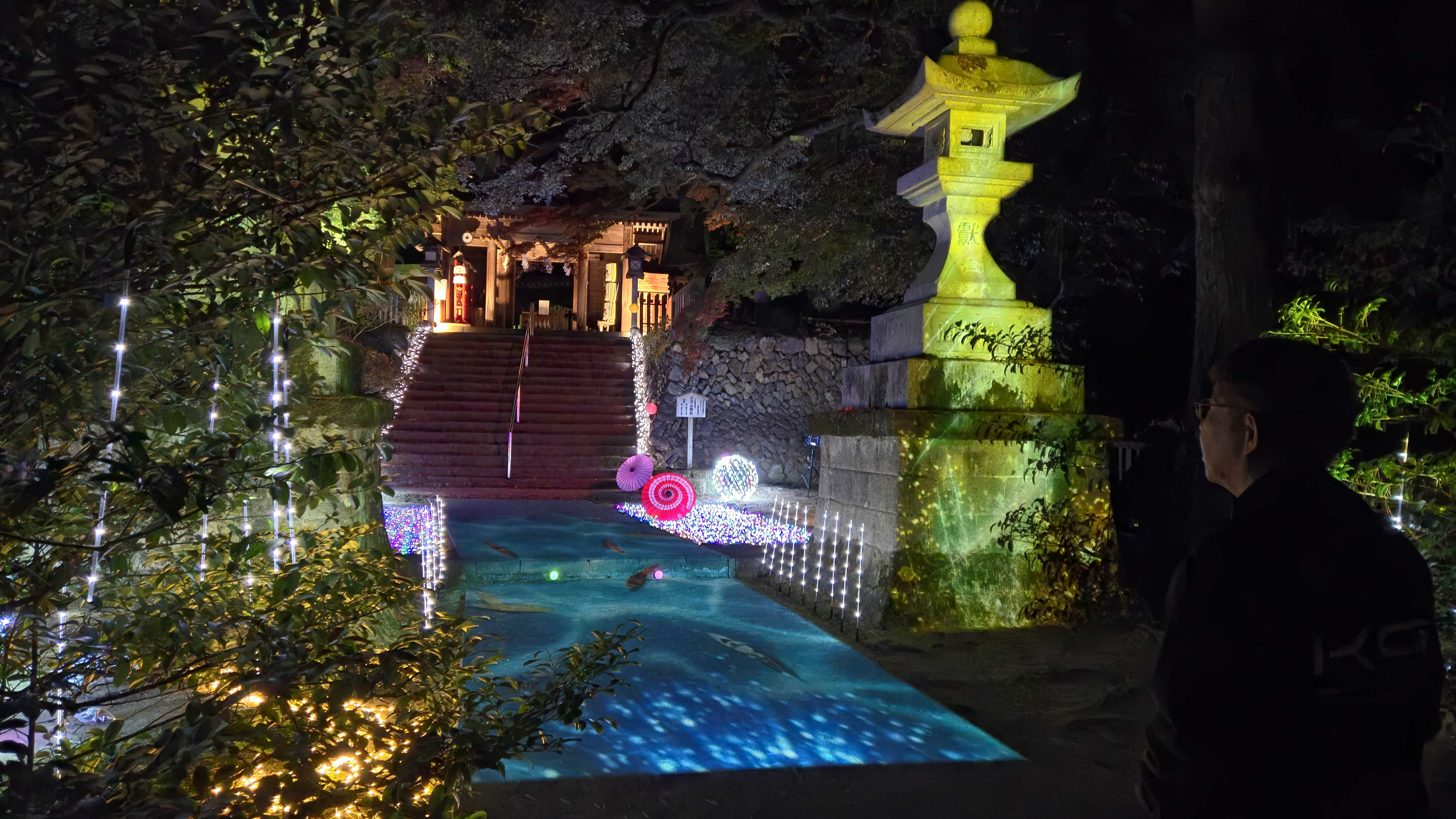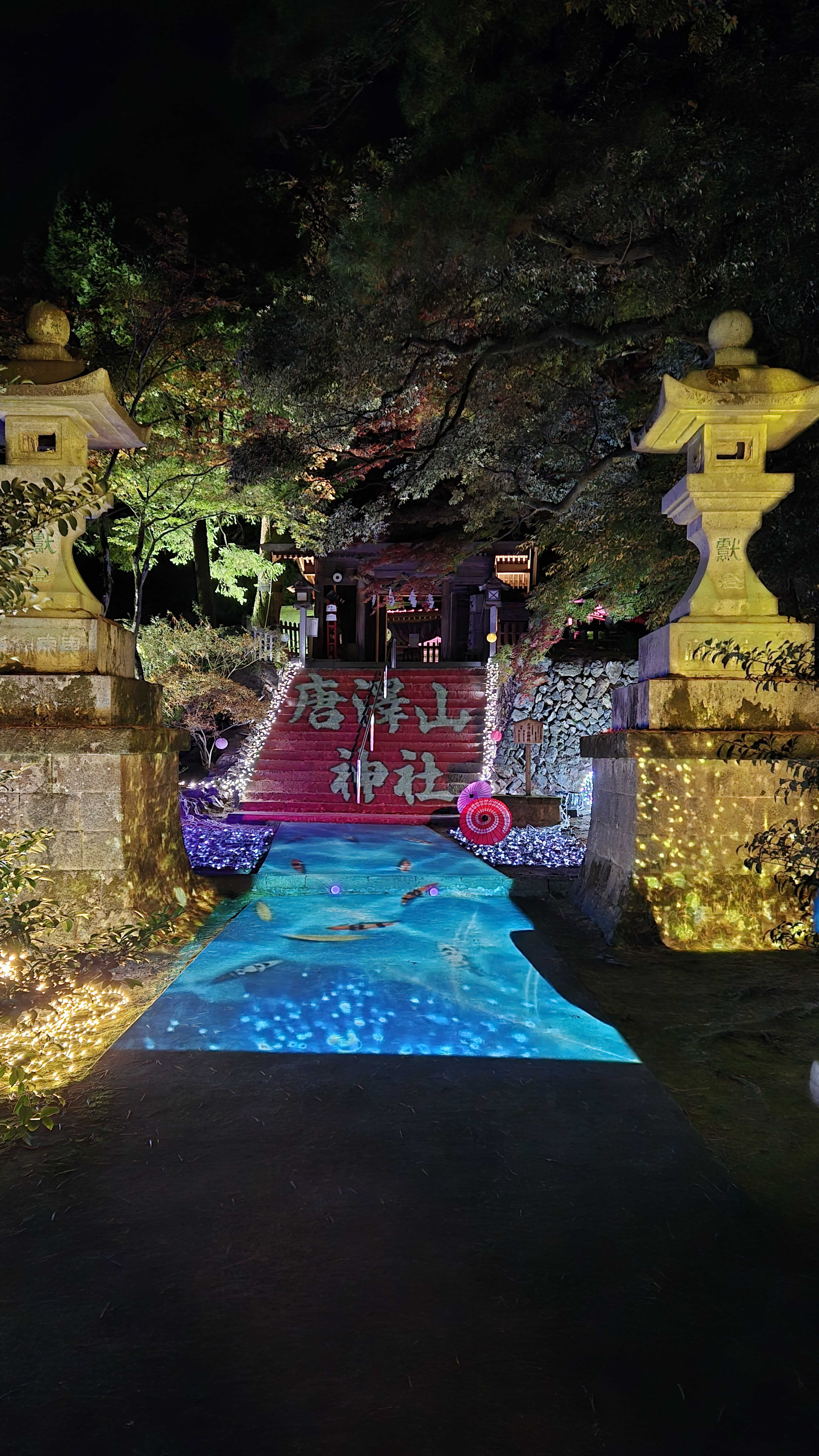 参道には鯉が泳ぎ、灯籠には蝶が舞い、幻想的な世界が広がります。